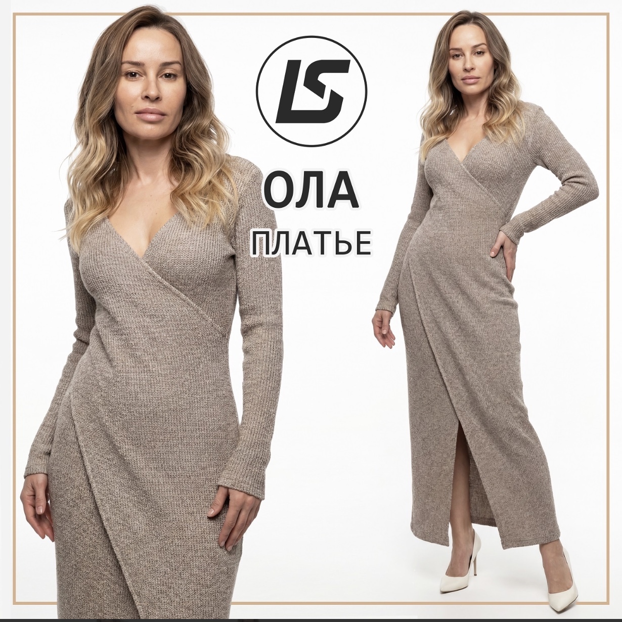посадка создают женственный и элегантный образ. Рукав платья втачной, удлиненный. V-образная горловина. Перед выполнен с запахом и асимметричным разрезом.